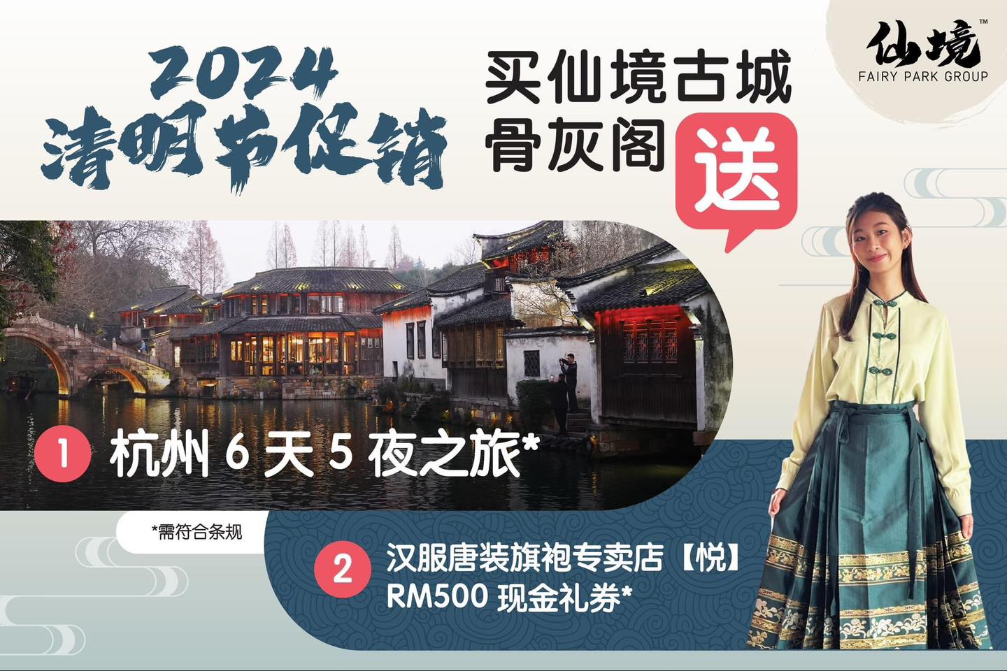 📣 清明节优惠!趁2024年6月30日促销结束前把握最后的机会。📣📣📣 趁着清明节的来临,我们特别推出了一个超值优惠🌸! 凡购买仙境古城骨灰阁,即赠送 6 天 5 夜杭州旅行,还有汉服唐装旗袍专卖店【悦】的 500 令吉优惠券!让你可以到杭州一游体验当地的人文特色,还能为你的衣柜添置别具风情的服饰! 仙境古城骨灰阁分别有各种不同的风格,每一个细节都是匠心打造,旨在营造清雅与宁静的氛围🥰。 如果你对仙境古城骨灰阁感兴趣,欢迎你前来仙境古城询问,我们的专员会带你参观! 欲了解更多信息,请致电019-9928883